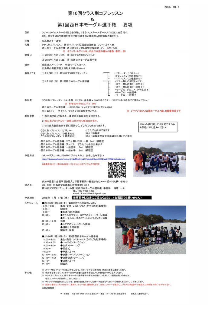 第10回クラス別コブレッスン第1回西日本モーグル選手権のお知らせ